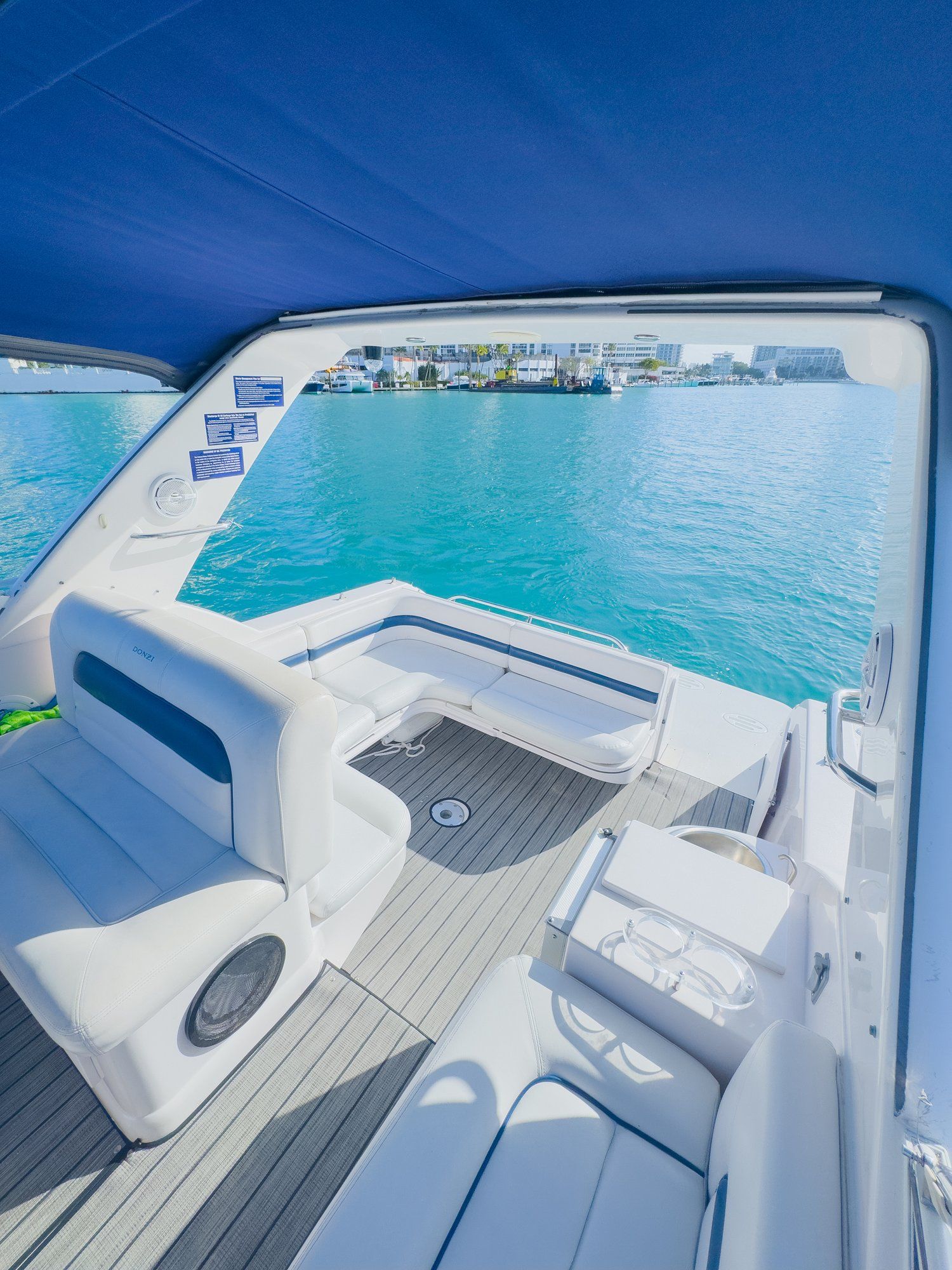 Step aboard the Donzi 38ft, a performance-driven yacht that’s built for those who love speed and luxury in equal measure. Known for its impressive hull design and powerful engines, the Donzi delivers an exhilarating ride while still offering the comfort and style you expect. Cruise the sparkling Miami coastline with ease and feel the rush as you glide through the water, all while surrounded by sleek lines and plush amenities.