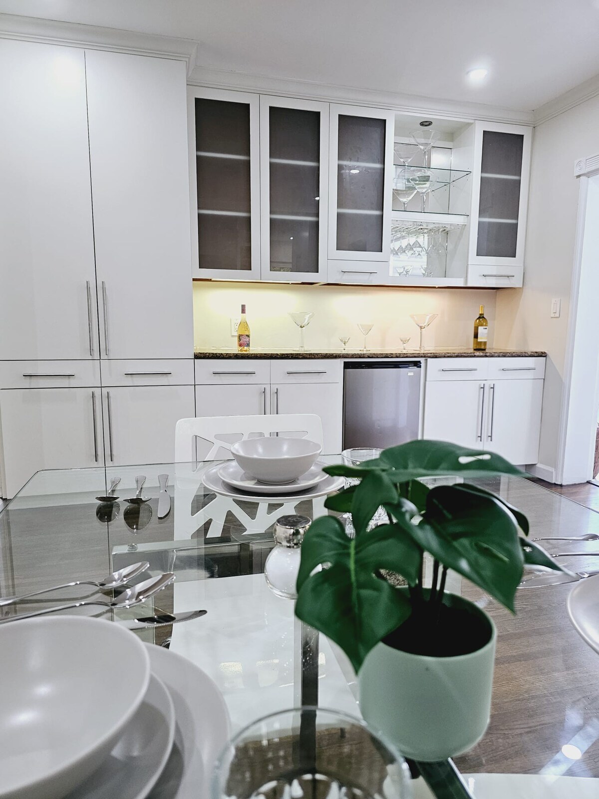 Brickell Enclave is a luxurious single-family home located in the prestigious Brickell neighborhood, accommodating up to 10 guests. This elegant property boasts 3 spacious bedrooms and 2 modern bathrooms. The master bedroom features a king-sized bed, while the other two rooms include queen-sized and twin beds. The living space is designed with modern furnishings, offering plenty of comfortable seating, a large smart TV, and high-speed Wi-Fi for entertainment. The fully equipped kitchen comes with stainless steel appliances, perfect for preparing meals at home, with an adjoining dining area that overlooks the stunning outdoor space.