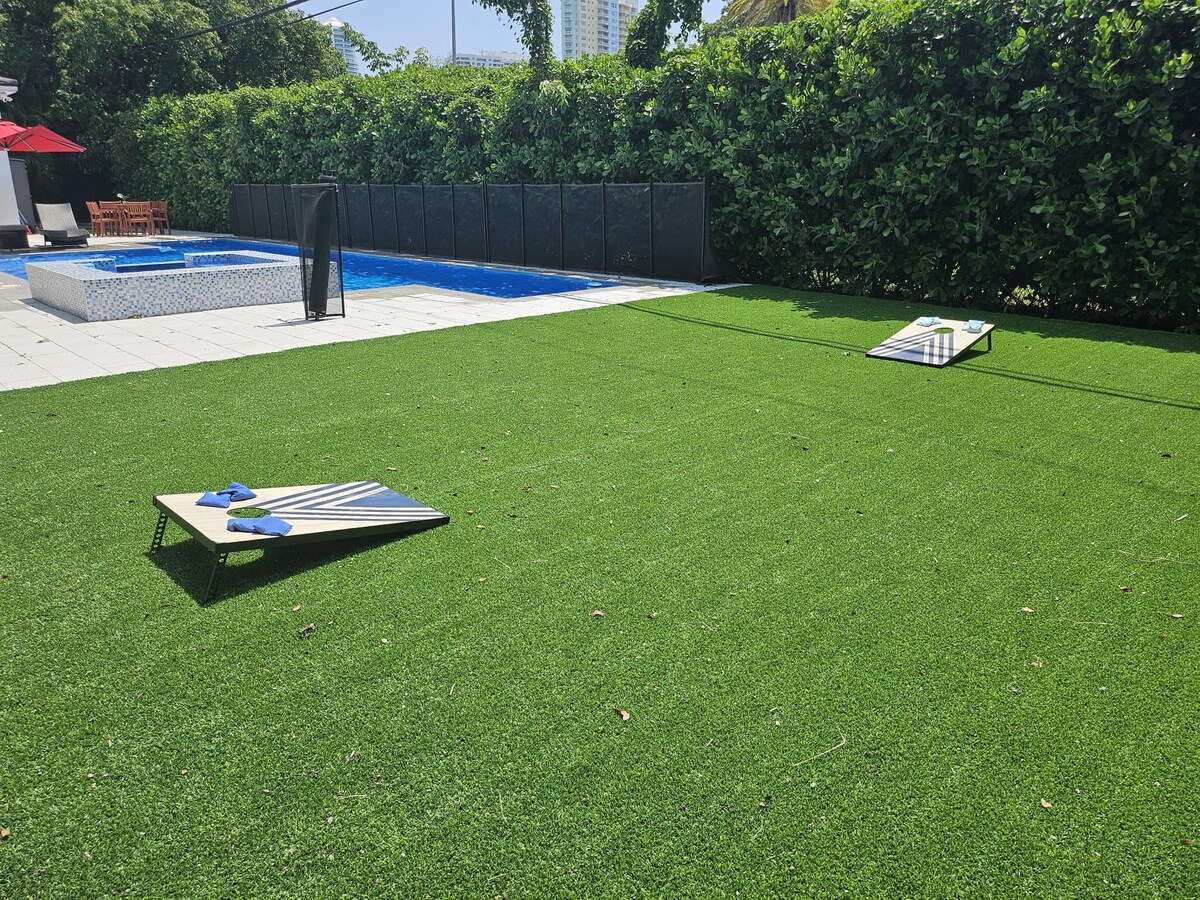 Guests at Brickell Enclave will have access to a modern 3-bedroom, 2-bathroom luxury home that is fully equipped for an enjoyable stay. The highlight of the property is its private backyard, which includes a swimming pool and a lounge area perfect for relaxing after a day of exploring Miami. Self-check-in ensures guests can arrive at their convenience, and the home is outfitted with air conditioning, high-speed Wi-Fi, and an in-unit washer and dryer.